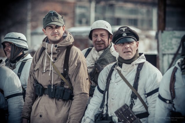 По фотографіях із реконструкторських заходів іноді може скластися враження, що більшість приїздить у німецькій формі, і вермахт набагато більше популярний. Це помилково. Просто німці більш екзотичні, тому і фотографи на них звертають більше уваги. Наприклад, на останньому нашому заході на німецькій стороні було три фотографи. А на нашій - лише один. Насправді на заходах кількість червоноармійців і німців завжди приблизно однакова. 23 лютого нас було 46, а німців - 52. І то, лише тому, що білоруси-червоноармійці, яких було 7 чоловік, подали заявку і не приїхали, навіть не повідомивши про це заздалегідь. По Україні ця пропорція зберігається. А от у Чернігові, наприклад, є лише 1 чи 2 німці і 8 червоноармійців.