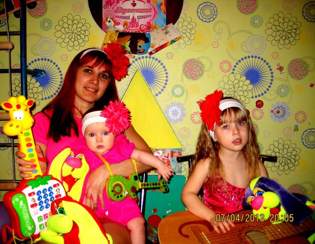 Каролина и Кристина с мамой Оксаной