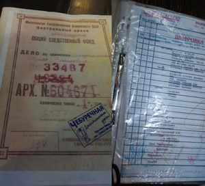 Внизу лестница упирается в запертую стеклянную дверь с надписью: «Посторонним вход строго запрещен!», за которой разместилась живописная группа, олицетворяющая «ужасы ГУЛАГа»: «вертухай» с деревянным автоматом (родной брат того, что на вышке) и паратройка «полосатиков» в позе «лицом к стене». Здесь у слабонервных еще есть время подумать, стоит ли поворачивать вправо и входить в другую дверь — дубовую, обитую железом и со смотровым окошечком.