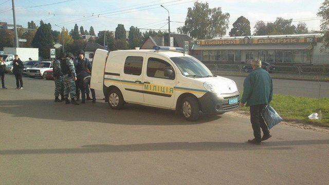 В общем, здесь в магазине мужика с гранатой задержали. Милиции здесь очень много было. Пожарные, скорая помощь тоже приехали. Перекрыли дорогу и тротуар. Кто этот мужик и где он взял гранату – неизвестно. Но с такими раскладами как-то опасно на улицах становится.