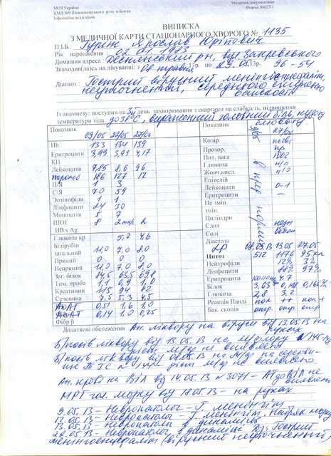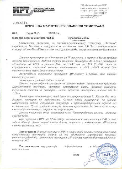 Месяц Ярик находился на лечение в неврологии. Наступило облегчение. По приезду в Киев он немедленно вышел на работу, ровно на один месяц, и снова боли. Теперь его госпитализировали в Киеве в инфекционное отделение с тем же самым диагнозом. Очередной месяц шло интенсивное лечение. Результат был, но слабый. Врачи заверяли, что все в пределах нормы, головные боли, говорили - "на погоду".