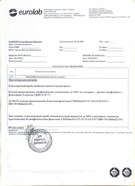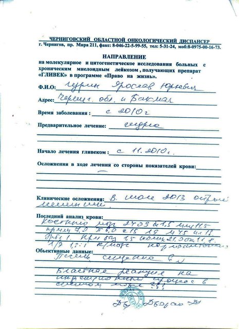 Буквально снова спустя месяц, больница, срочная госпитализация. Были проверены все возможные жизненно необходимые функции, многочисленные МРТ, сотни дорогостоящих анализов, показывали относительную нормальную картину. На очередном консилиуме, было решено проверить Ярослава на наличие нейролейкоза, ответ пришел крайне обнадеживающий. Лимфобластный нейролейкоз. Ярославу была в срочном порядке назначена химиотерапия с последующим облучением. Врачи советуют сделать пересадку костного мозга.Нужны деньги на лечение, а именно на химиотерапию и облучение, а также не последующую реабилитацию, если облучение окажется неэффективным, необходимо будет делать пересадку костного мозга, которую делают только за границей. Будем благодарны за поддержку и понимание! Ярослав имеет право жить,быть с нами и делать свою семью счастливыми,воспитывать сына.