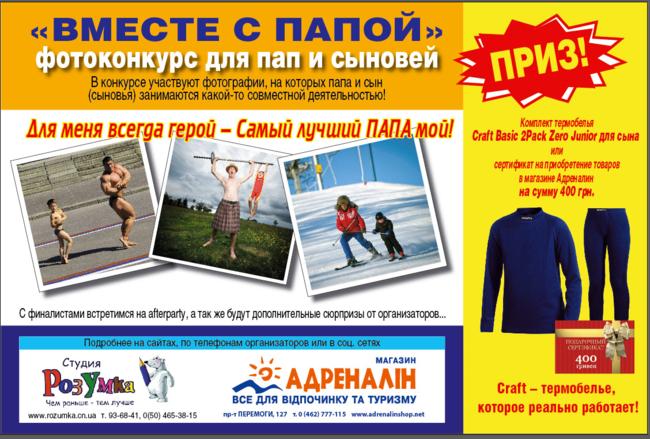Победители получили комплекты качественного термобелья для сыновей от магазина "Адреналин".