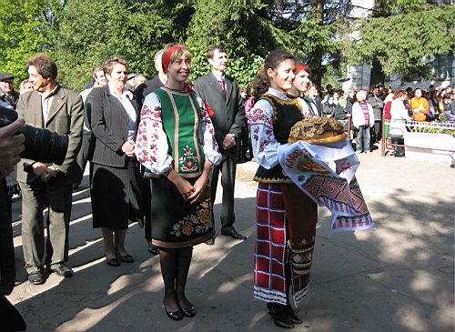 Краснокутской и Герасименко досталась почетная миссия – вручать гостю хлеб-соль