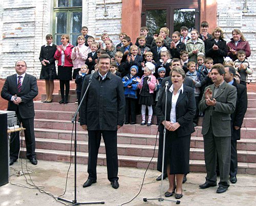 Встреча жителей села Сыраи Козелецкого района с лидером Партии регионов Виктором Януковичем была назначена на 11 часов утра. К этому времени у сельской школы собрались местные жители, гости, журналисты. А для учеников Сыраивской общеобразовательной школы I-III степени объявили большую перемену…