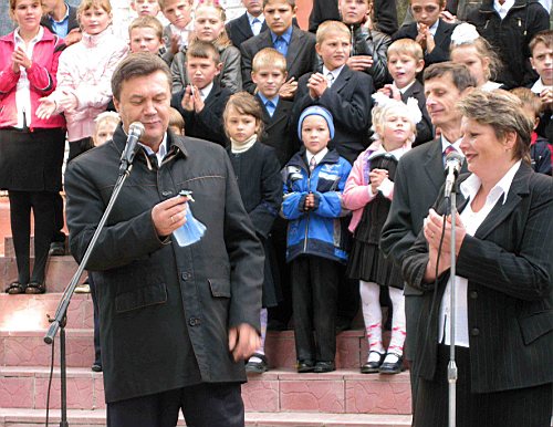 - Ми мріємо і зробимо щоб наші мрії здійснились, - заверил учителей и всех присутствующих Виктор Янукович. – Ми мріємо щоб школи були сучасні. Щоб батьки не шукали школи за кордоном. Ми зробимо все, щоб наші школи мали відповідне обладнання, щоб кожен вчитель мав такі умови, при яких нам не соромно було б водити дітей, онуків у ці школи. Це завдання ми ставимо перед собою на найближчий час, і ми це зробимо обов’язково! Я ніколи не відступав від своїх слів!