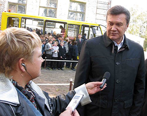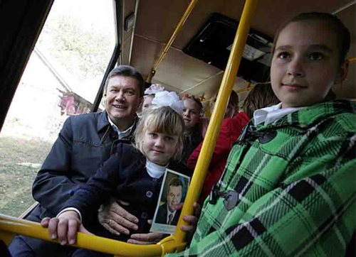 от школьного автобуса из рук лидера Партии регионов