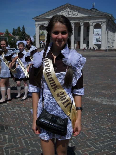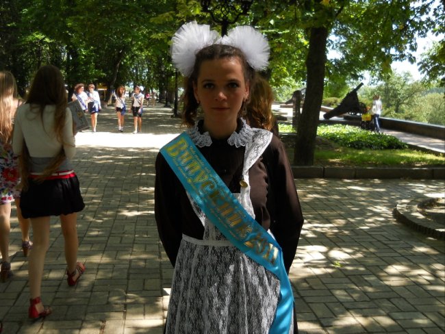 Анна Игнатенко, 11-й класс, Анисовская школа: наш классный руководитель – Михаил Витальевич Биволькевич. После линейки решили приехать в Чернигов и в последний раз погулять все вместе. У меня последний год выдался отличным. Я – золотая медалистка! Удалось и достать школьное платье, которое хотела – взяла его у подруги.