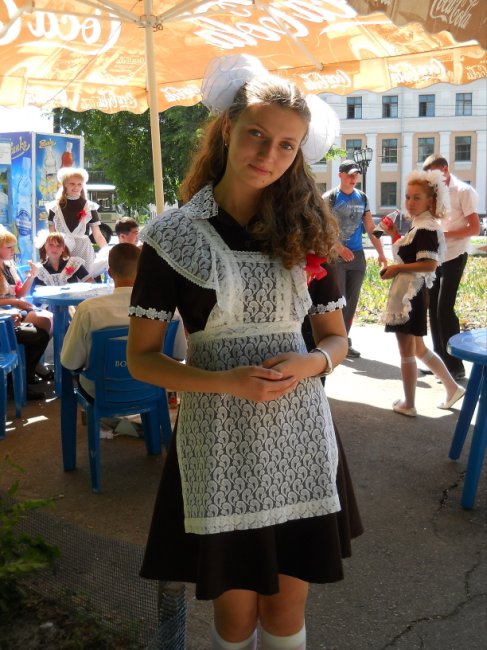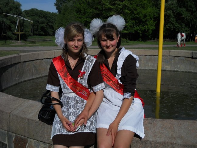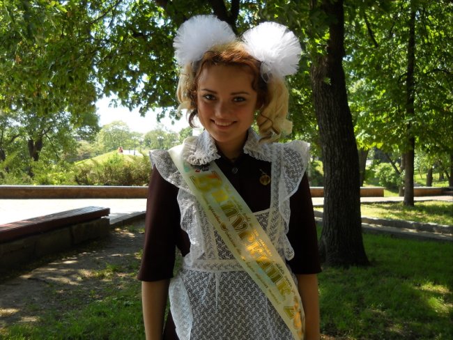 Виктория Стукало, 11-А, школа №7: Советскую школьную форму взяла в прокате. Заплатила 120 грн. Наш последний звонок прошел круто! Потом собрались в классе. Пришла первая учительница и мы прочитали письма, написанные нами в 1-м классе. Чуть не расплакалась. Первоклассники нам подарили самодельные цветочки, красивые открытки и конфеты. Последний звонок алкоголем не отмечали – не наш стиль. Мы сегодня трезвые, как стеклышки!