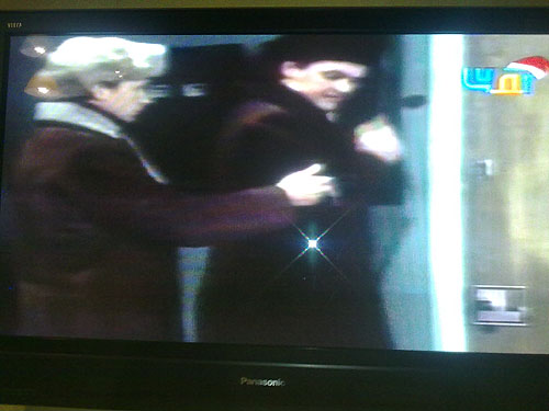 Черниговское областное телевидение в очередной раз жжёт. Все уже привыкли к этим ужасного качества трансляциям советских фильмов - и это в то время, когда ремастеринг сделали ну практически каждому стоящему советскому фильму. Но 31 декабря ушедшего года ЧТ переплюнуло само себя: показали "Иронию судьбы", записанную на "видак" в начале 1990-х годов, свидетельством чему фотка выше. С таким логотипом первый канал вещал, согласно википедии, с 25 декабря 1991 года по 31 марта 1995 года. На дворе 2011-й...