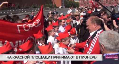 Видео ТВ Дождь - tvrain.ru/articles/den_pionerii_na_krasnoj_ploschadi_gennadij_zjuganov_povjazal_galstuki_shkolnikam_iz_kryma_lichno-368571/