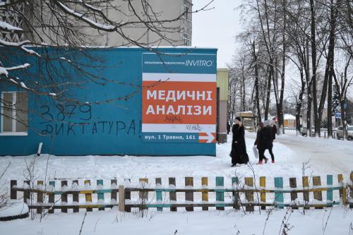 Вот так народ реагирует на новые законы. На свежепокрашенной стене, где принимают анализы, по ул. 1 Мая