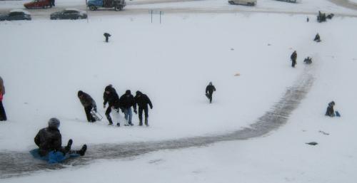 Всем нам известно, что в городе, зимой, при наличии снега,  проще всего спускаться на Екатеринке, на Болдинке и на Королевской горке в Яловщине.