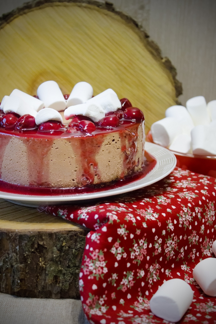 Друзья, предлагаю Вам новый рецепт торта – муссовый! Сразу скажу, что рецепт требует терпения, но ингредиенты и исполнение очень простое. Торт невероятно чудесный с прекрасной бисквитно-воздушной основой и шоколадным муссом. А чтобы оттенить вкус шоколада я положила, как начинку, спелую вишню. Рецепт рассчитан на кулинарное кольцо (форму) диаметром в 13,5 см и высотой 7 см.