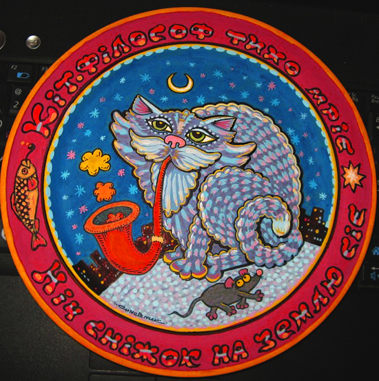 Надо же было такому случиться: едва вчера, ближе к полуночи, мельком проскользнула инфа о том, что с моей помощью на свет появился котэ-философ, увековеченный на цельнодеревянной буковой тарели, как от пользователя по имени Андерсен поступило предложение, от которого сложно отказаться. "Котэ! Пол-царства за котэ!" - таково его краткое содержание.