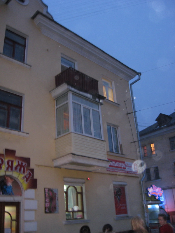 Гуляли с мужем по городу. Погода была не очень. Но предпраздничное настроение было, мы шли и оживлённо разговаривали. Проходили мы возле гастронома напротив главпочтампа и тут услышали шум. Сначала подумали что на землю с крыши упала сосулька. Но... оказалось, что отпала часть балкона, точнее глыбы (см. фото). Самое интересное, что мы только пару секунд назад проходили под этим балконам и если бы это попало на нас, пришлось бы нам плохо... Несколько продавщиц вышли посмотреть и вернулись обратно. Кажется, никого не волновало происшедшее...