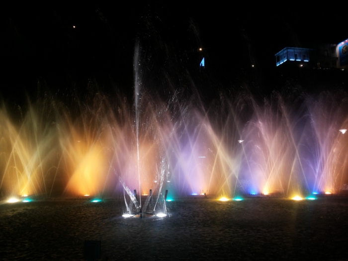 По вечерам в Тбилиси - традиционные "поющие фонтаны". Забегая наперед, замечу, что в Ереване это проходит куда ярче.