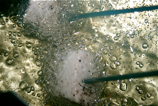 Наконец-то добралась до фондю в кафе “Нитра”. Увидев рекламу на “городе”, была приятно удивлена – швейцарская национальная кухня + душевная компания + романтическая атмосфера, срочно испробовать. Ох, как велико было мое разочарование, когда я зашла в пустой холодный зал, просмотрела меню и мне принесли тарахтящую посудину с раскаленным маслом за 34 гривны. Макаешь в масло кусочек мяса, ждешь пока оно свариться – подходящее время поболтать по душам, пошутить, сблизиться за таким необычным приготовлением еды – работает! И уже совсем не так страшно, что огонь под какелоном (специальная жаропрочная посуда) постоянно тух, а за 6 миниатюрных кусочков мяса пришлось заплатить еще 46.30, жаль только, что свечек никто не предложил в этом полутемном царстве. Не знаю, как обстоят дела со сырным фондю (74.67), но думаю, что «Мраморное&raq ...