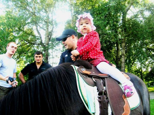 Только сходил в спртзал, чтобы показать Полине Андреевне, как её братик занимается рукопашкой, поработал, гирьки потягал, да на турнике подрыгался. А потом выдвинулся с любимой женой и друзьями в городской парк. Полина Андреевна гарцевала на пони, а я лодырничал. Даже поленился понянчиться с пьяным мужиком уснувшим на ступеньках парка... Ну мне показалось, что моя помощь ему нафиг не нужна и ему и так хорошо ;)