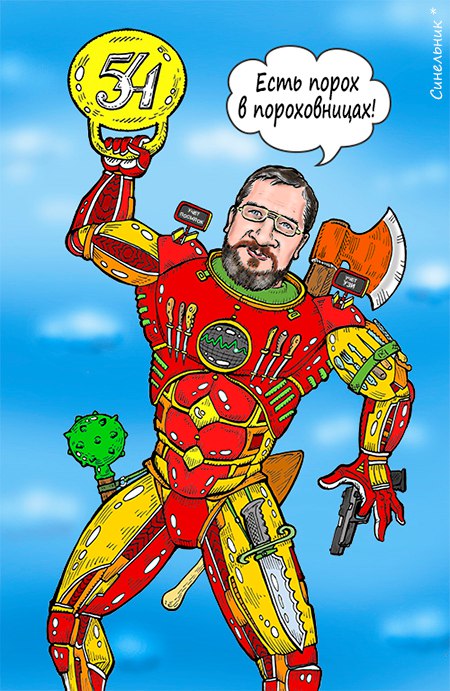 Так пусть это будет исполненный в стилистике благословенных 80-х дружеский шарж, изготовленный по спецзаказу к полукруглой дате одного научно-технического дяди, оснащённого, как видите, костюмом а-ля Iron Man from Ukraine.