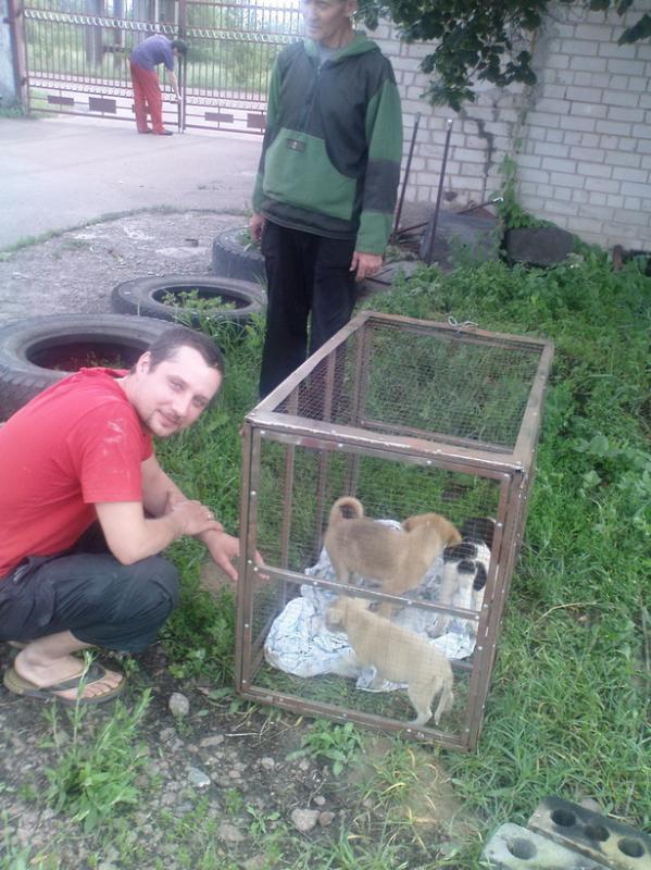 В первую очередь это три щенка "шахтёра", которых спасли из канализационной шахты пожарные. Дублирую фото: