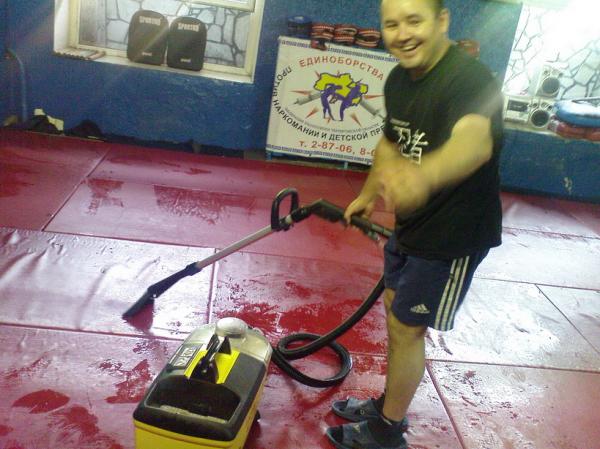 Ко мне в блогах обратилась Анжелика, которая оказалась хозяйкой бизнеса по оказанию услуг населению. Эти уважаемые люди чистят ковры, мебель и вообще всё что Вам угодно. В общем, Анжелика предложила своё оборудование и химические реактивы, для того, чтобы я провёл чистку татами в одной из секций, где тренируются дети.