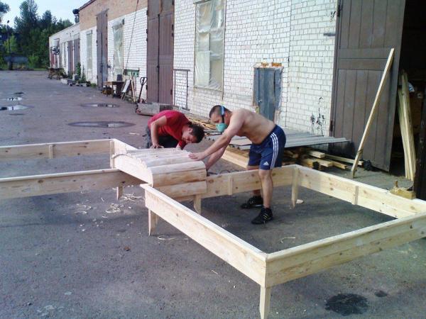 Короче говоря, сегодня утром заехали к Веронике за пиломатериалом и приступили к изготовлению детской площадки.