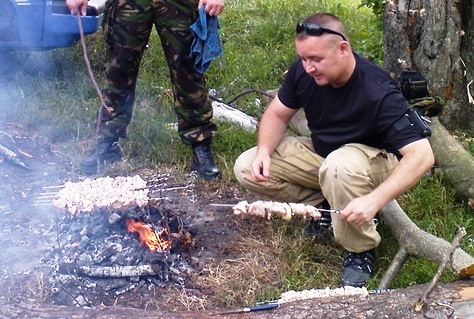 15 июня я выехал за пределы города с одной небольшой спортивной командой для подготовки к соревнованиям, которые должны были состояться в Киеве. Тренировка прошла успешно, а после сам Бог велел хорошенько подкрепиться, потому основным блюдом стал шашлык из ошейка свинины, замоченный с луком и набором специй в кефире. Правда сначала я мясо не дожарил (виноват, люблю с кровью), но потом исправился и обед плавно переходящий в ужин удался.
