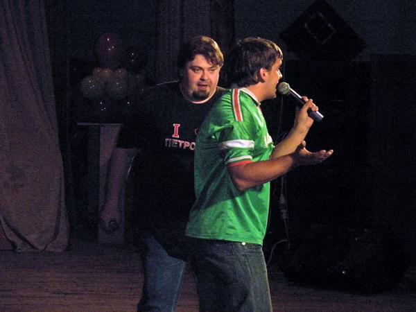 После визитки мы получили 5,4 балла и были на предпоследнем месте, отставая от лидера на 0,6. Но разминку мы отыграли лучше всех и получили максимум 7,0 баллов и выбрались на первое место, опережая минчан всего на 0,2 балла. В домашнем музыкальном задании выступали вторыми, но отлично завели зрителя и получив снова максимум 7,0, победили в кубке. Для нас это стало такой приятной неожиданностью, все-таки соперники были значимые. По окончании игры услышали много приятных слов. Отбанкетились, похулиганили в гостинице и в три часа ночи наш друг Костя повез нас на своей машинке домой...