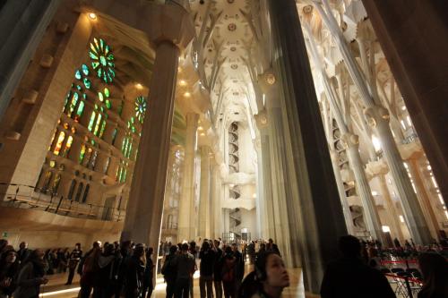 Храм Саграда Фамилия очень высокий, можно сказать - громадный. Но он при этом непередаваемо лёгкий, светлый. Буквально - воздушный.