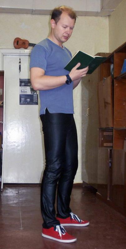 Теперь второе фото, через два месяца после начала диеты. Специально влез в брюки, в к-ых лет 15 назад выступал в ночном клубах)) Сорри - времена и мода тогда были другие))