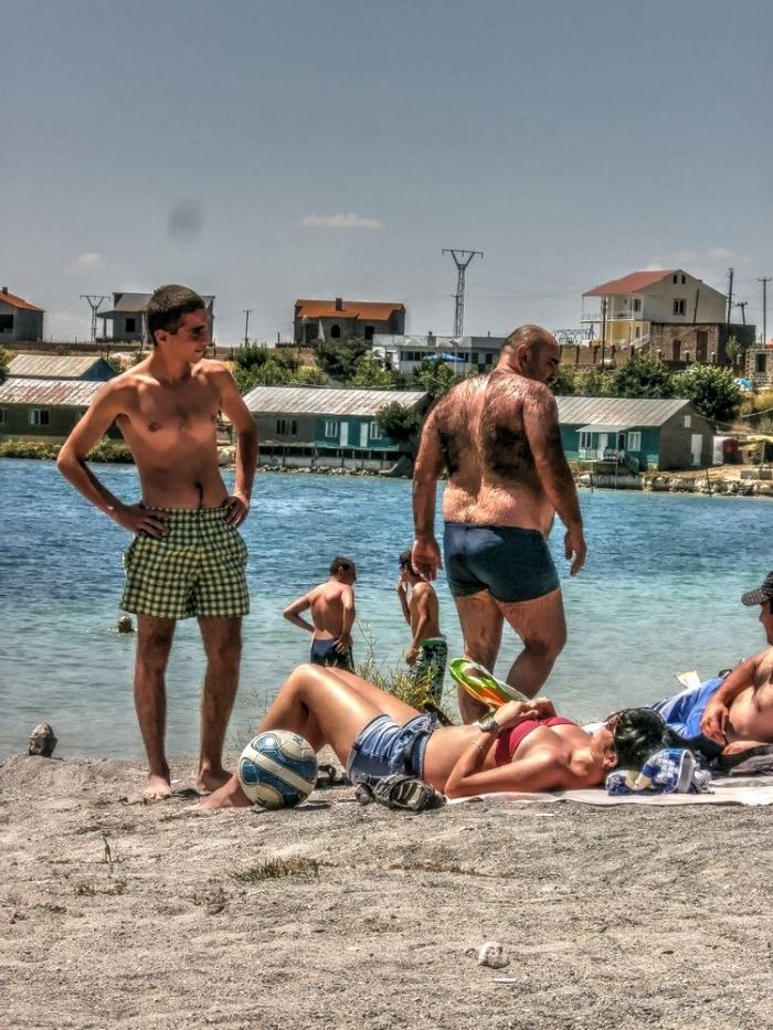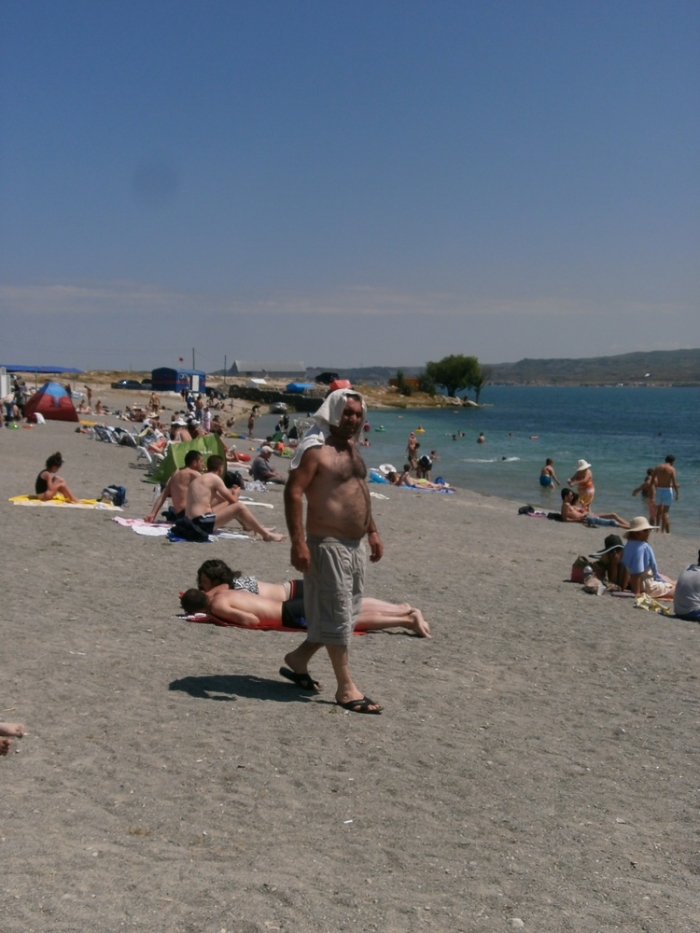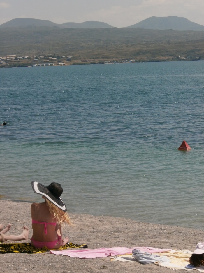 Оттуда мы поймали машину и поехали в ереван. Но по дороге было озеро Севан. Мы захотели туда заехать, позагорать и искупаться (вода - ледяная в середине лета. но чистейшая). Водители решили сделать то же самое.