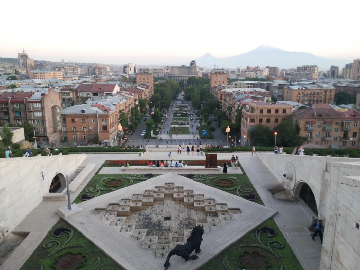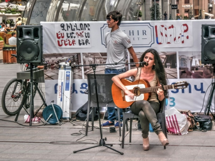 Песни поют в довольно европейском центре Еревана.