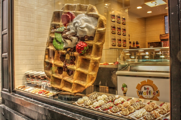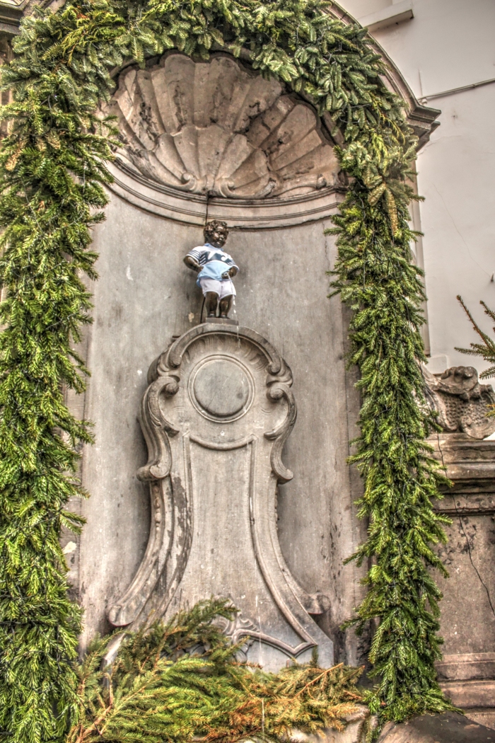 Вафли подаются с мороженым, клубникой, фруктами, карамелью и… с видом на «Писающего мальчика». Самый известный памятник Брюсселя мал, да удал)). При известной доле везения можно увидеть его одетым или созерцающим на какое-то представление, так как традиционно именно у этого страдающего уриноманией парня)) собираются жители города для проведения весёлых и забавных мероприятий. Кстати, в своё время этот мальчик примерял на себя и украинскую вышиванку!