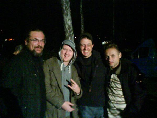 Тут и Петя Ярмоленко (известный оператор) и Макс Турчев (режиссер этого клипа, тоже известный оператор) и Фриман с бригадой и тот чувак из федерации, что на волынке играет – Родион, кажись… Роман Иванцок уже здесь, Кирилл «Джамироквай» и пацаны из Николавева во главе с Олегом Кошевым (южный шоу-бизнес)… веселее всего было наблюдать, как в лес по корчам тулиться шикарный лимо с Иксесками и девочками из Кремля.