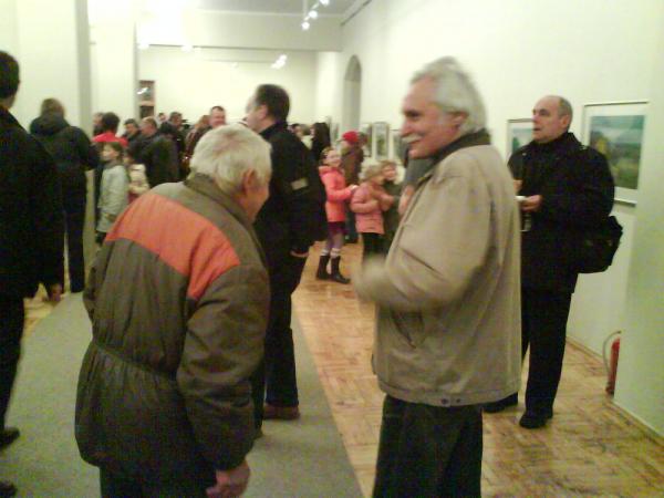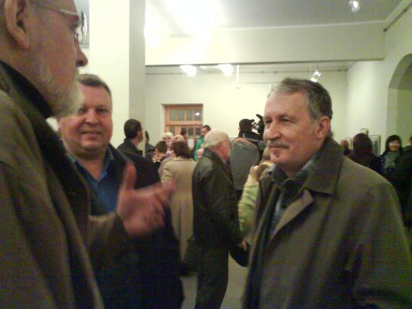 Потом в разговоре всплыло, что сегодня открывается выставка Татьяны Федоритенко и там будет присутствовать вся «художка» во главе с Тамарой Ивановной Пильчевской. Меня аж ностальгнуло! А тут и Дима говорит – да, я на эту съемку расписан с Адруг. Я моментально примазался! А еще так забавно в костюме (типа специально на выставку шел). При входе встречает Тамара Ивановна, говорю, что это вы телевидение приглашаете, а бывших учеников нет… В зале собрался весь арт-бомонд (кроме Синельника!).