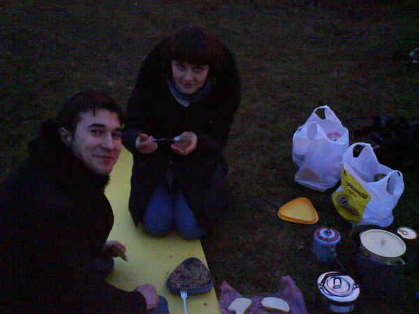 Потом, мы решили идти обратно к машинам – опять марш-бросок по полю. Что ж там было дальше? А… вроде пытались еду какую-то мутить… гречка, консервы… хорошо, что была газовая горелка… светало.