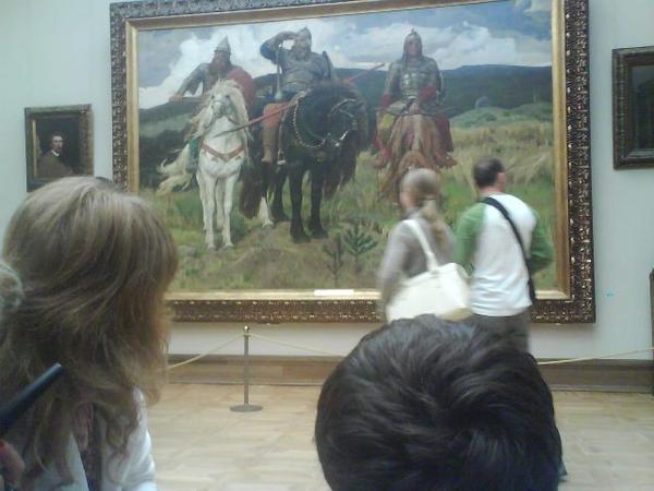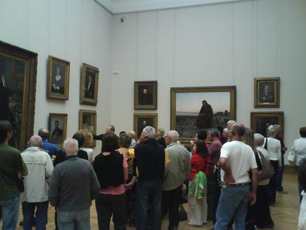 Кстати, в Третьяковке есть очень удобная услуга - аудиогид, такой небольшой приборчик напоминающий телефон, вводишь код, который указан возле картины и слушаешь, как народные артисты России прекрасно-поставлеными голосами с интонацией и драматургией рассказывают историю шедевров.