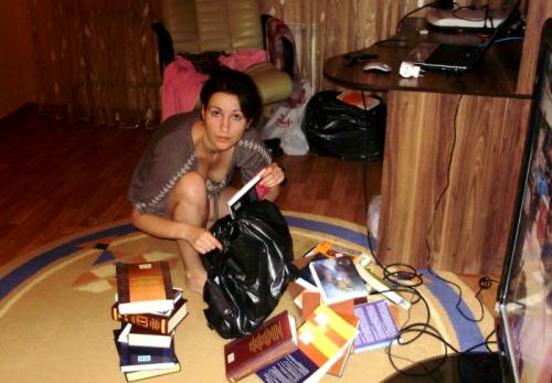 Куда же Аллуська без своих книжек, три пакета по 50 кило))) Грузчики даже не поморщились, хоть я предупреждала, что тяжелые