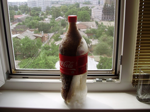 Кола, которую забыли в морозилке расщепилась на воду и непосредственно колу))