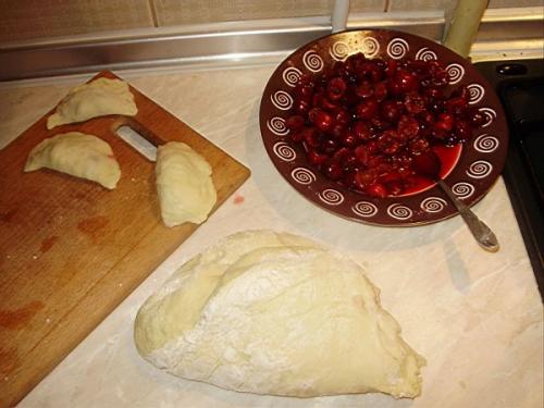 В общем, взвесив все «за» и «против», а также вдохновившись рецептами из Интернета, решила попробовать впервые в жизни сделать вареники. Самым удачным мне показался вот этот рецепт - там вся фишка в том, чтобы соду надо добавлять не при замешивании, а высыпав на стол, с мукой обкатать в ней шарик с тестом.