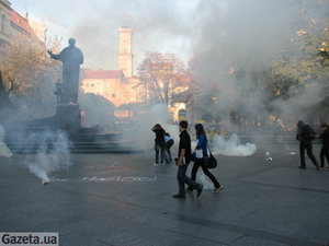 Тут же размещены анонсы главных тем недели и фотофакт «Шевченко в дыму!». Так 26 сентября несколько десятков молодых людей в масках зажгли 15 дымовых шашек на площади, перед памятником Т.Шевченко. Одновременно во все стороны они начали разбрасывать листовки с лозунгами “І вражою злою кров’ю волю окропіте”, “Свободу Ганненку”, “Свободу політв’язням”. Акцию организовала националистическая молодежь Львова в знак протеста по обвинениям националиста Игоря Ганенка из города Сумы в поджоге общежития с иностранными студентами.