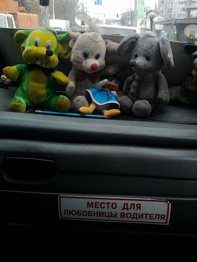 Интересно, откуда эта повсеместная любовь водителей к детским игрушками и искусственным цветам? Ведь разве входит в интересы этих суровых мужчины что-то подобное? Может в душе они такие же мягкие и пушистые, как эти маленькие друзья, что сопровождают их на маршрутах?