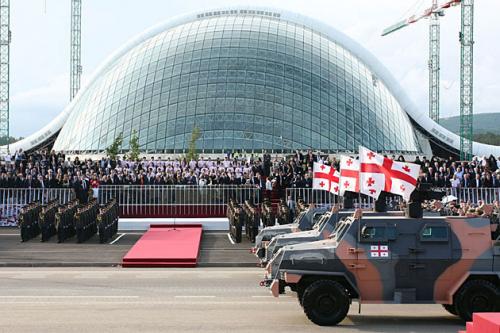 Новое здание парламента стоит на месте бывшего "Мемориала славы". Его просто стерли с лица земли взрывчаткой. Однако это было сделано с нарушения правил безопасности. В результате этого погибли мать и ее дочь. Еще один человек погиб во время строительства парламента. Ранее парламент Грузии собирался в Тбилиси, однако в 2012 году он переехал в не до конца построеное помещение в Кутаиси.