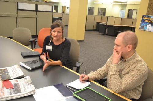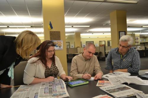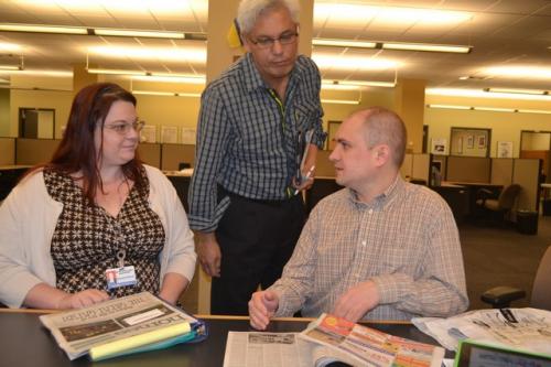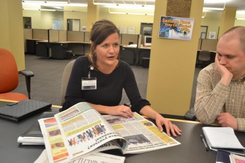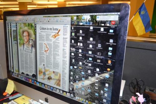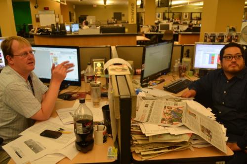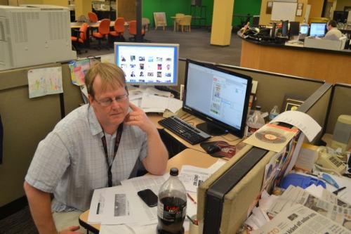 Итак, сегодня в редакции после традиционной планерки нам удалось пообщаться со Стивом Нельсоном – главным графическим редактором компании. Он здесь работает уже 43 года, пришел сразу после школы. То, что делает этот человек – действительно талант, его дизайн для пдф-страничек, рекламных и специальных приложений, а также инфографика ничем не уступают национальным американским изданиям.