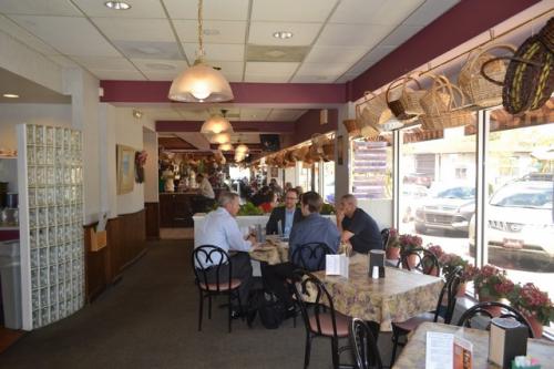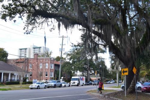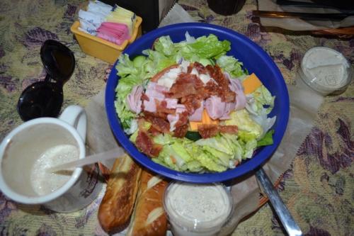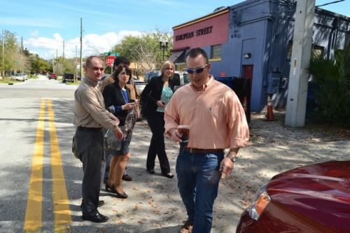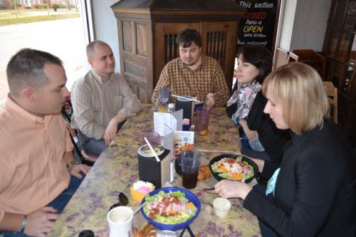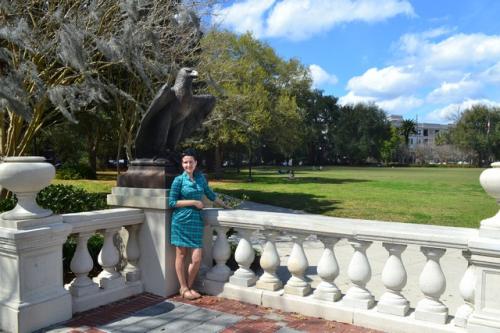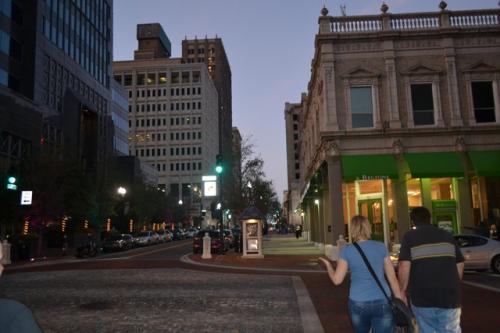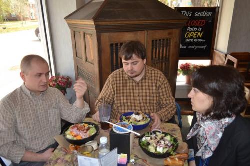 После Миранды нас на обед должен был повезти журналист Клиф Дэвис. Клиф бывший военный, как я уже упоминала, отец троих детей и пишет опять же на военные темы. Наконец-то нам довелось пообщаться с коренным жителем Джексновилля, у которого даже прабабушки-прадедушки родились и выросли здесь. Он поведал о том, что раньше Джексон был небольшим городом, где гоняли скот через дорогу, а теперь везде сплошной хайтек и хайвей)) У него есть привычка, когда он что-то одобряет говорить: «Yes, sir или Yes, mam!» и делать это как-то по-особенному четко и громко, по-военному. Оказалось, что эта привычка не связана с армией, это фишка коренных южан. Снова нас повезли в так называемый престижный частный сектор, где расположены дома как с картинки, некоторым из ни по 100-150 лет. Кафе «European street» получило награду, как лучшее место общепита города 2014-го года. Оно действительно по дизайну интерьера напоминает европейскую улицу, а кухню можно назвать более-менее хэлзи. Тем не менее, наш спутник заказал традиционные для американцев сендвичи. Что они в них нашли, что так активно их едят, я не могу понять до сих пор. Мы в свою очередь взяли по диетическому салатику и напитки.
