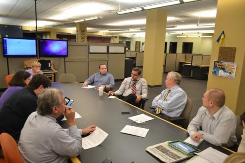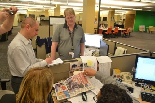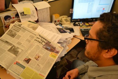 На традиционной утренней планерке, главы отделов и редакторы выбирали темы, что возьмут в разработку. Ее очень сложно синхронно переводить, даже с двумя переводчиками, о чем мне и говорили коллеги из Черновцов. Впрочем суть – одна и та же, отобрать наиболее интересные истории из десятков предложенных, которые вскоре попадут в газеты и на сайт.