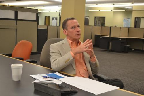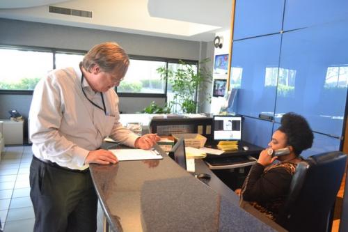 После этого нас ждало общение с самой загадочной и необычной личностью Флорида Таймс Юнион вице-президентом Куртом Кейвудом (Kurt Caywood). Эту должность ввели 3 года назад и многие сотрудники, как я поняла от новопоставленного начальника, который по рангу выше всех в компании (в доказательство он показал схему-распечатку, где его стоит над всеми) не в восторге и даже подшучивают над ним. Тем не менее Курт личность колоритная, а если бы вы слышали его смех, вы бы не забыли его никогда. Жаль, у него был приступ аллергии сегодня и засмеялся он всего пару раз. По фото видно, что он похож на скорее на француза, чем на американца и он самый большой модник в ФТЮ, включая самых красивых девчонок.