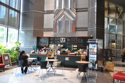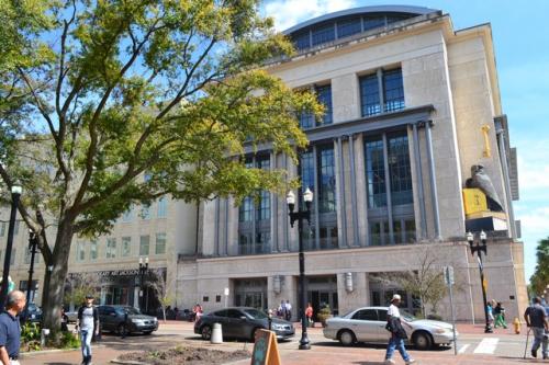 К тому же можно прогуляться от редакции пешком по одной из самых красивых улиц и добраться до него буквально за 10 минут. По обслуживанию это чем-то напоминает наш Арбуззо или бывшие Два гуся. То есть ставишь на поднос то, что тебе надо, либо уже запакованные салаты и сендвичи, либо тебе насыпают различные салатики и делают наполнители к цветному блинчику, в общем, такое)) Что удивило в наличии не было кофе – только чай и содовая. Кофе продавался только в лобби – но это был самый вкусный кофе за все время, что я успела попробовать в Джексонвилле. Его посоветовала переводчик Елена – в кофе добавляют лед и еще какой-то наполнителей типа орехового или что-то в этом роде. Мы взяли на вынос и прогулялись назад к редакции по набережной. Кстати, это здание популярно у местных фотографов, один из них, по словам наших знакомых, сделал недавно серию отличных фото Джексона с него. Наши фотографы, как мы знаем, тоже любят подобные вещи и публикуют в соцсетях фото, сделанные с Градецкого, или многоэтажки, что на пр-те Победы и прочих высоток.