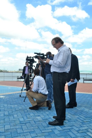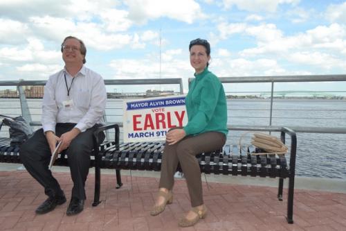 Выступление мэра и его поддержки, к моему удивлению проходило на набережной. Пришли представили прессы и один фейковый журналист. От поддержки выступили 2 человека – мужчина и женщина. А вот фейковый журналист вызвал массу обсуждений в кругу местных настоящих журналистов. В Америке есть такое явление, когда конкурент подсылает к другому конкуренту человека, что косит под прессу, дабы задать неудобный вопрос и посеять сомнения в душах избирателей. Этот персонаж задал вопрос «Были ли вы когда-нибудь арестованы?», но пресс-секретарь Фабиан Леви, быстренько оттеснил пройдоху от своего шефа и не дал ему его скомпрометировать. Сам Фабиан временно нанятый сотрудник, это что-то среднее между политическим консультантом и пресс-секретарем у нас, до этого он вел кампании в других штатах. Очень активный и улыбчивый молодой человек. По поводу фейкового журналиста, Дэвид еще назвал его «duck» (утка), в штатах это считается нечестный прием, а все нечестное их удручает и очень возмущает. Мы сказали, что в Украине, на подобное вообще не обратили бы внимания и это посчитали бы одной из самых безобидных вещей, к которой могут прибегнуть политконкуренты.